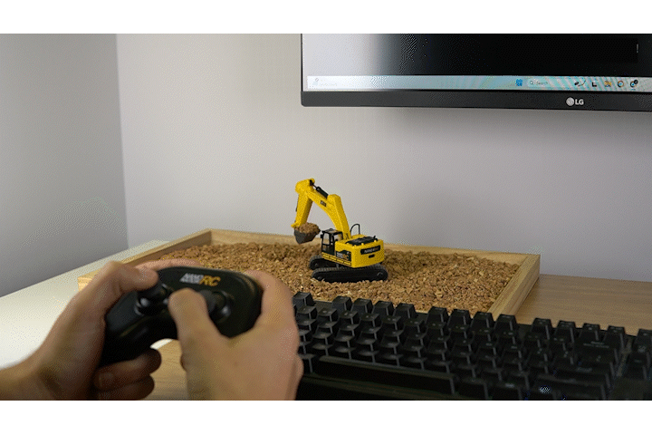 Each track is driven independently, enabling true skid-steer movement, pivot turns, and realistic maneuvering just like a full-size excavator.